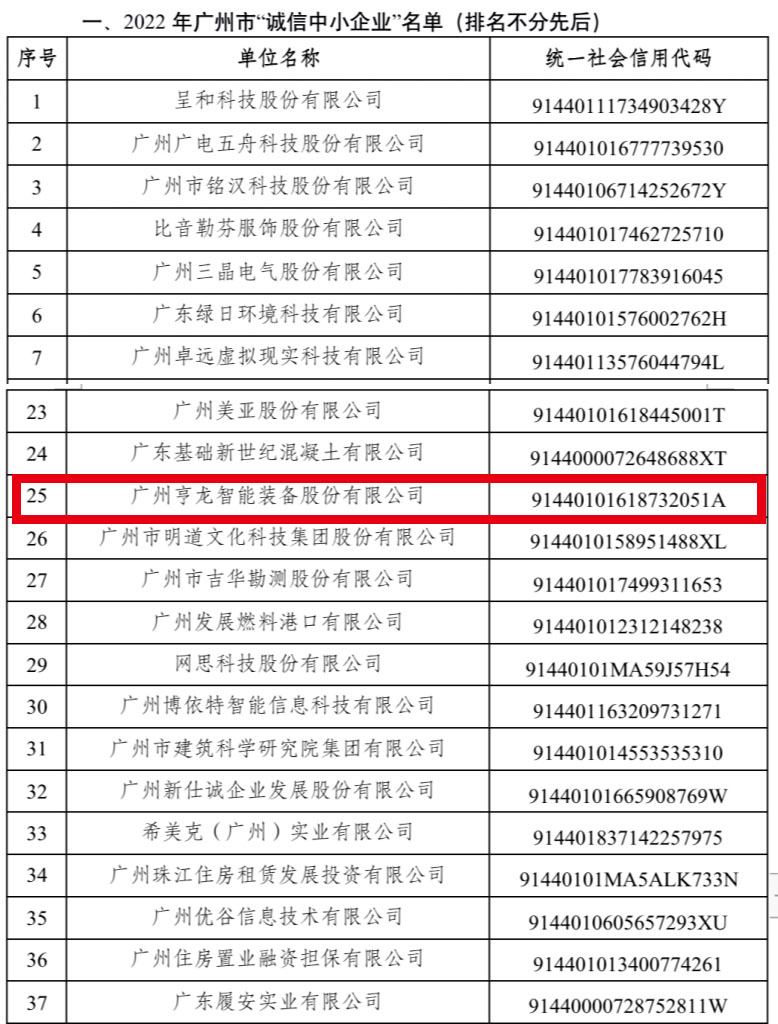 同時,論壇上公布了2022年廣州市100家“誠信中小企業(yè)”與20個“信用創(chuàng)新應(yīng)用案例”入選名單。在公布的100家“誠信中小企業(yè)”名單中,亨龍榜上有名。